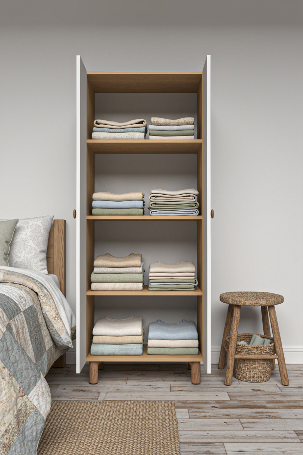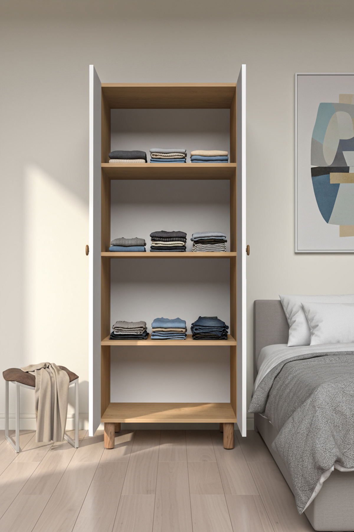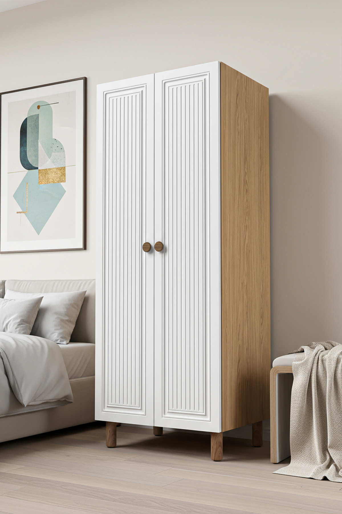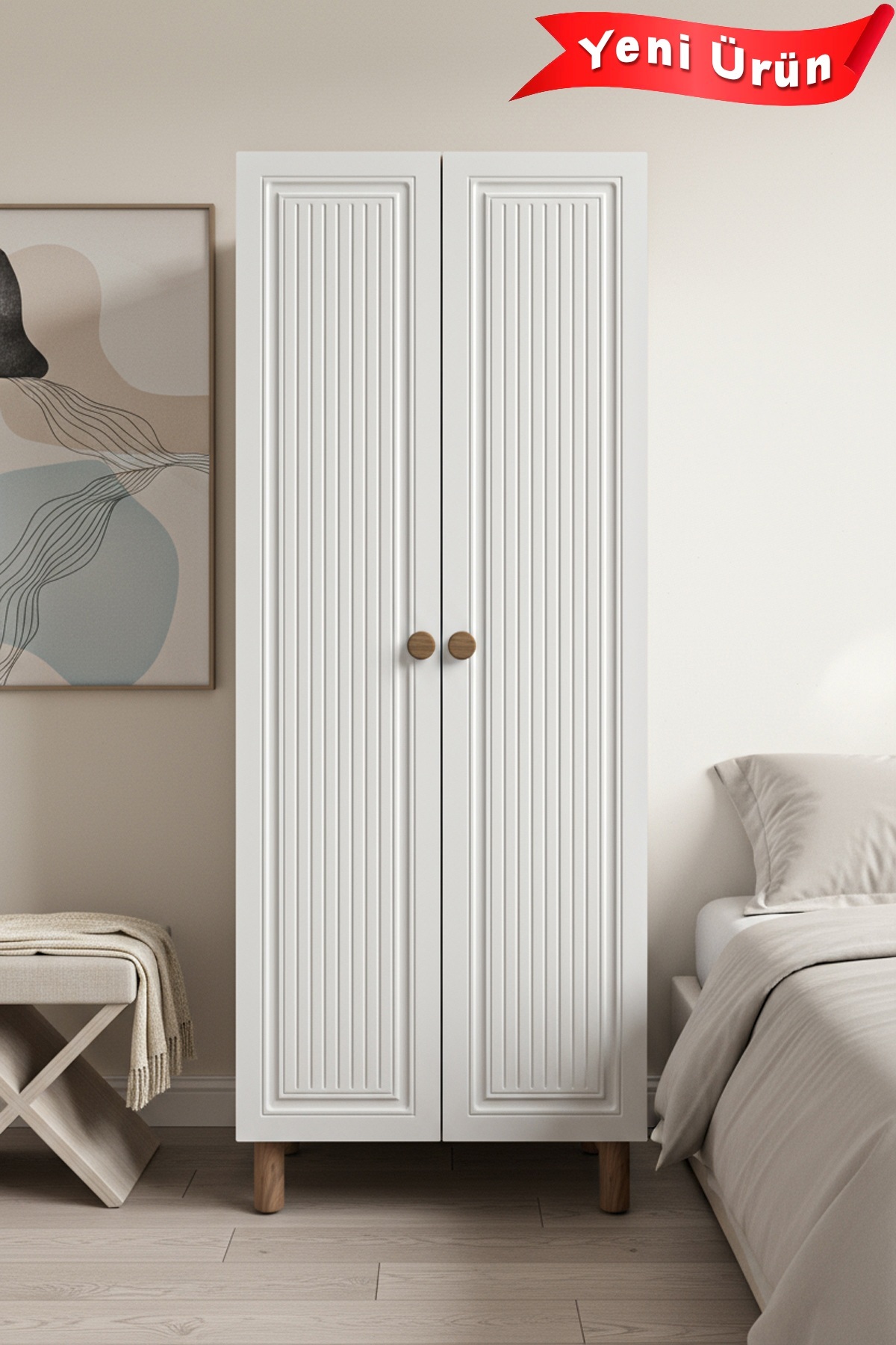 2 KAPAKLI 3 RAFLI GARDIROP MDF KAPAK