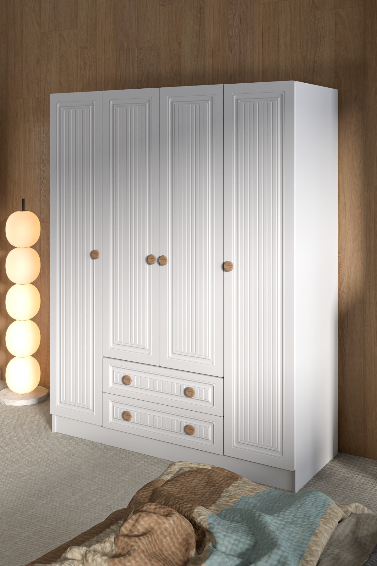 – Modern tasarımı ile mekanınıza şıklık katan 4 kapaklı gardırop, günlük kullanımınızda pratiklik ve estetik bir görünüm sunar.; – Kapaklı yapısı sayesinde içindeki eşyalarınızı tozdan ve dış etkenlerden korur, düzenli bir görünüm sağlar.; – 140 cm genişliği ile geniş iç hacmi sayesinde kıyafetlerinizi rahatça asabilir ve saklayabilirsiniz.; – 52 cm derinliği ile dar alanlarda bile kolayca konumlandırılabilir; evinizin her köşesine uyum sağlar.; – Suntalam gövde materyali, dayanıklılığı ve uzun ömürlü kullanımı garanti ederken, TR menşeili olmasıyla yerli üretim kalitesini yansıtır.; – Aynasız tasarım seçeneğiyle, gardırobunuzu kişisel zevkinize göre dekore etme özgürlüğü tanır.;