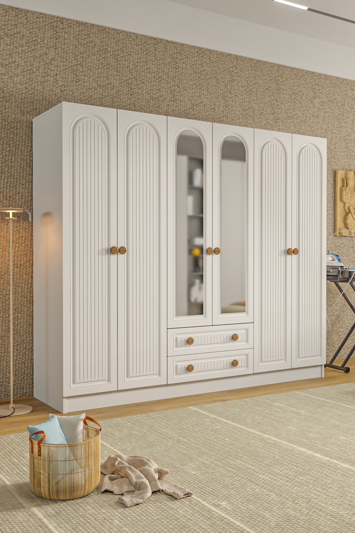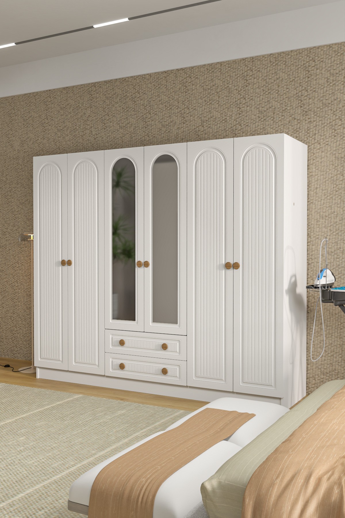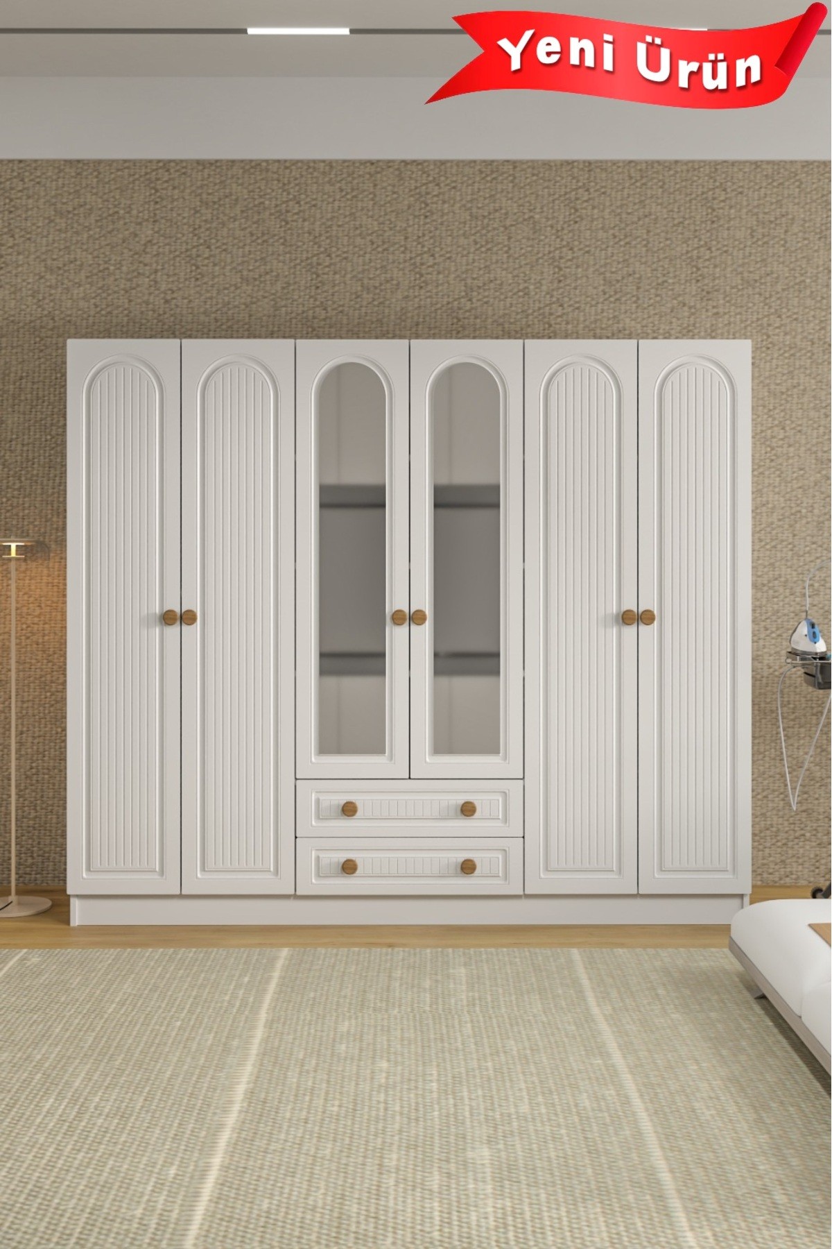 BOHEM 6 KAPAK 2 ÇEKMECELİ AYNALI GARDIROP MDF KAPAK