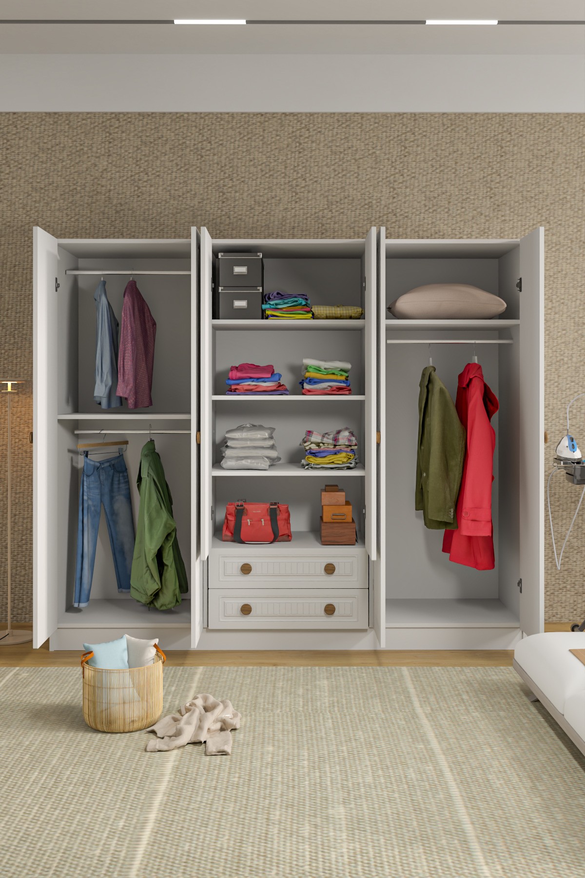 – Modern tasarımıyla evinizin dekorasyonuna şıklık katan 6 kapaklı gardırop, aynalı yapısı ile hem estetik hem de işlevsel bir kullanım sunar.; – 210 cm genişliğe sahip bu gardırop, geniş saklama alanları sayesinde kıyafetlerinizi düzenli bir şekilde saklamanızı sağlar.; – Suntalam gövde materyali ile dayanıklılık ve uzun ömürlü kullanım vaat ederken, MDF kapaklar modern görünümüyle dikkat çeker.; – Aynalı fonksiyonu sayesinde hem gardırobunuzun içini kolayca görebilir hem de aynalı kapakları ile mekanınızda ekstra bir ayna işlevi görür.; – Kapaklı tasarımı ile toz ve nemden koruma sağlarken, kapak sayısı 6 olarak belirlenmiştir; böylece farklı eşyalarınız için ayrı bölmeler oluşturabilirsiniz.; – 52 cm derinliği ile yeterli depolama alanı sunan bu gardırop, evinizdeki dağınıklığı ortadan kaldırmanıza yardımcı olur.;