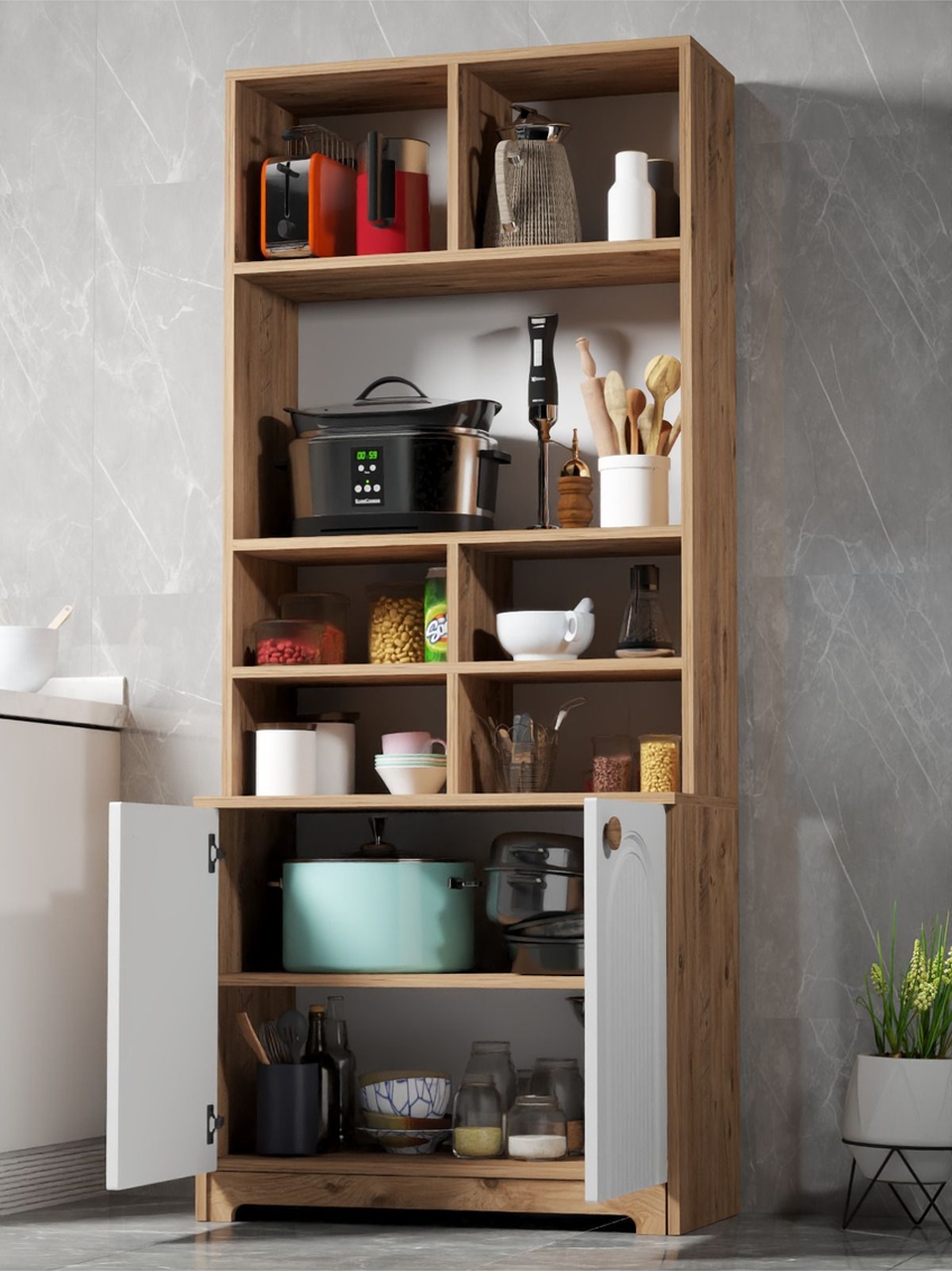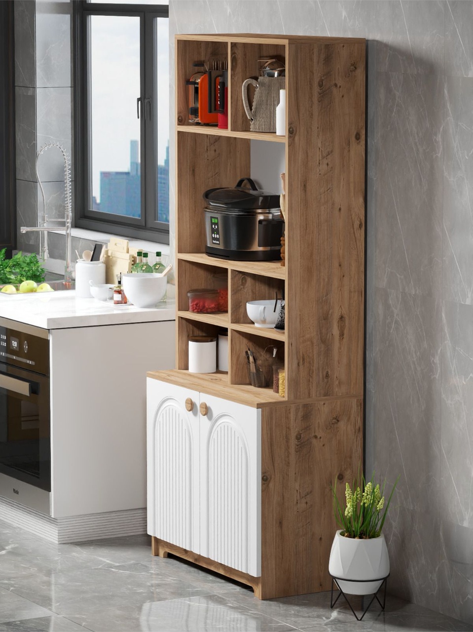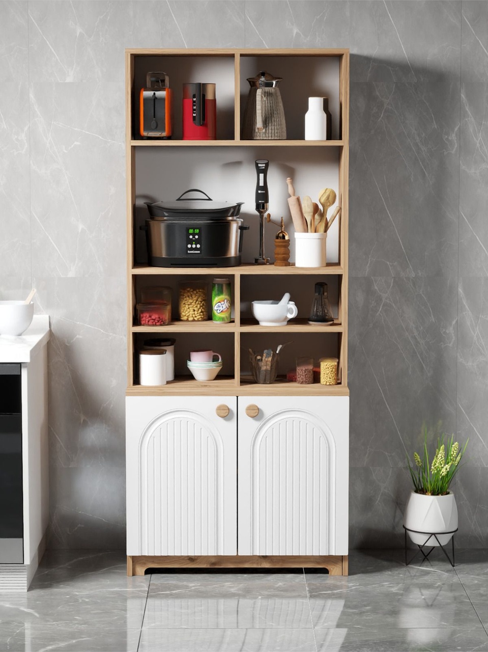 Bohem Çok Amaçlı Kiler Mutfak Dolabı – Beyaz N Çizgili Model Beyaz N Çizgili Model