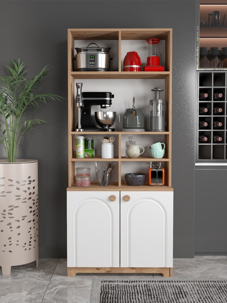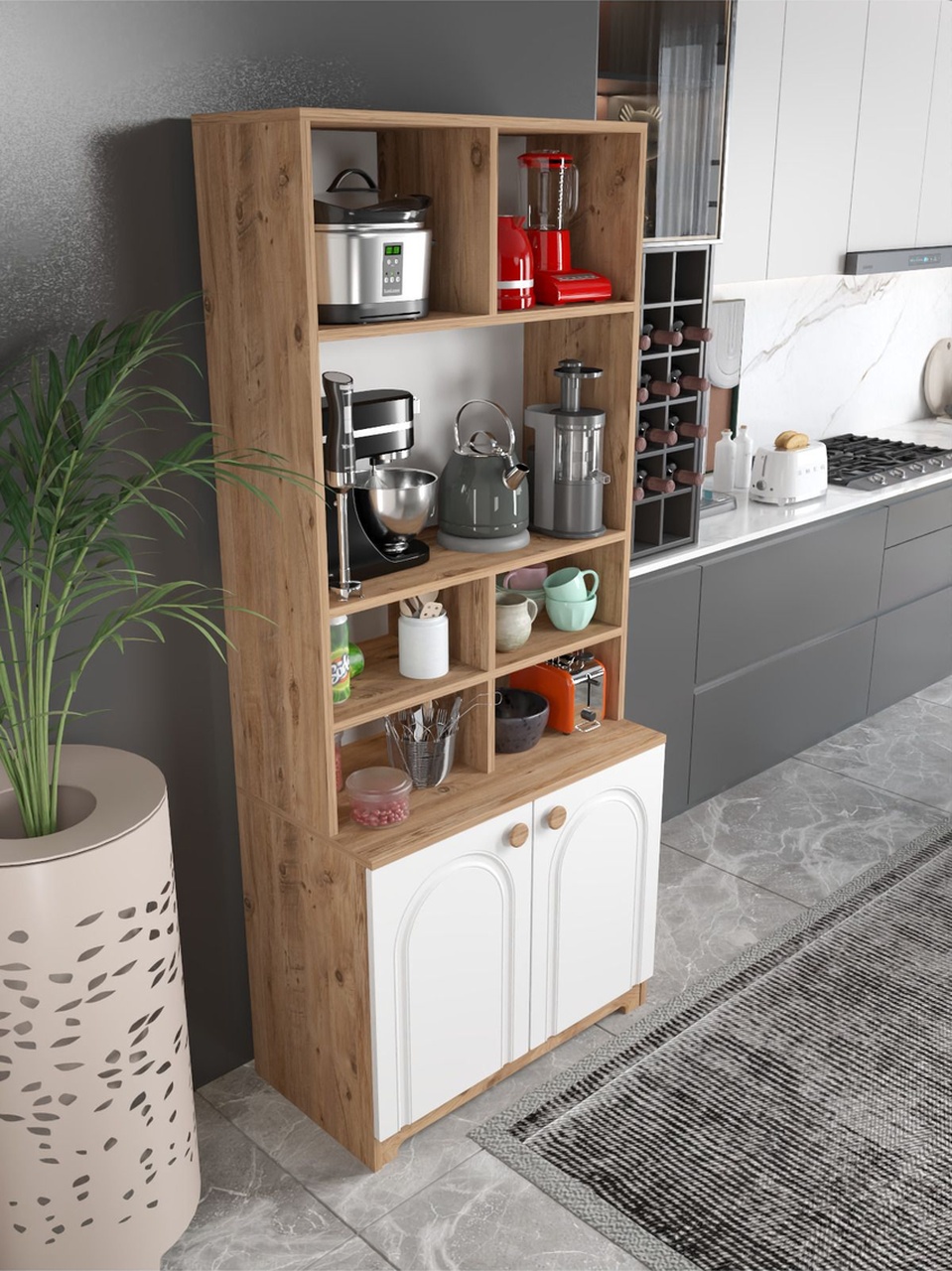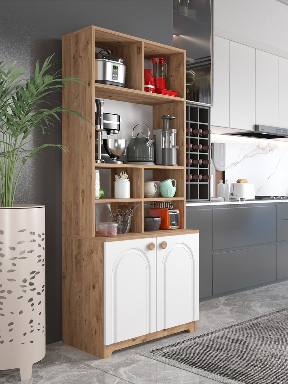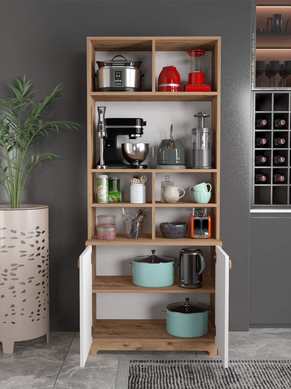 – 185 cm yüksekliğinde, geniş iç hacmiyle mutfaklarınızda ferah bir alan yaratır.; – 79 cm genişliği sayesinde geniş raflar ve çekmecelerle eşyalarınızı düzenli bir şekilde saklamanızı sağlar.; – Suntalam malzemesi ile dayanıklılık ve uzun ömürlü kullanım sunar.; – Türkiye menşeli yapısıyla yerel kaynaklı malzemeler kullanarak sürdürülebilir bir tercih olanağı tanır.; – Modern tasarımıyla mutfağınıza şık ve çağdaş bir görünüm kazandırır.; – Boyuna modeli, mekanınızda daha fazla depolama alanı oluşturmanız için idealdir.; – Çoklu çekmece sayısı sayesinde bulaşıklardan tencere takımlarına kadar her türlü mutfak gerecinizi kolayca organize edebilirsiniz.