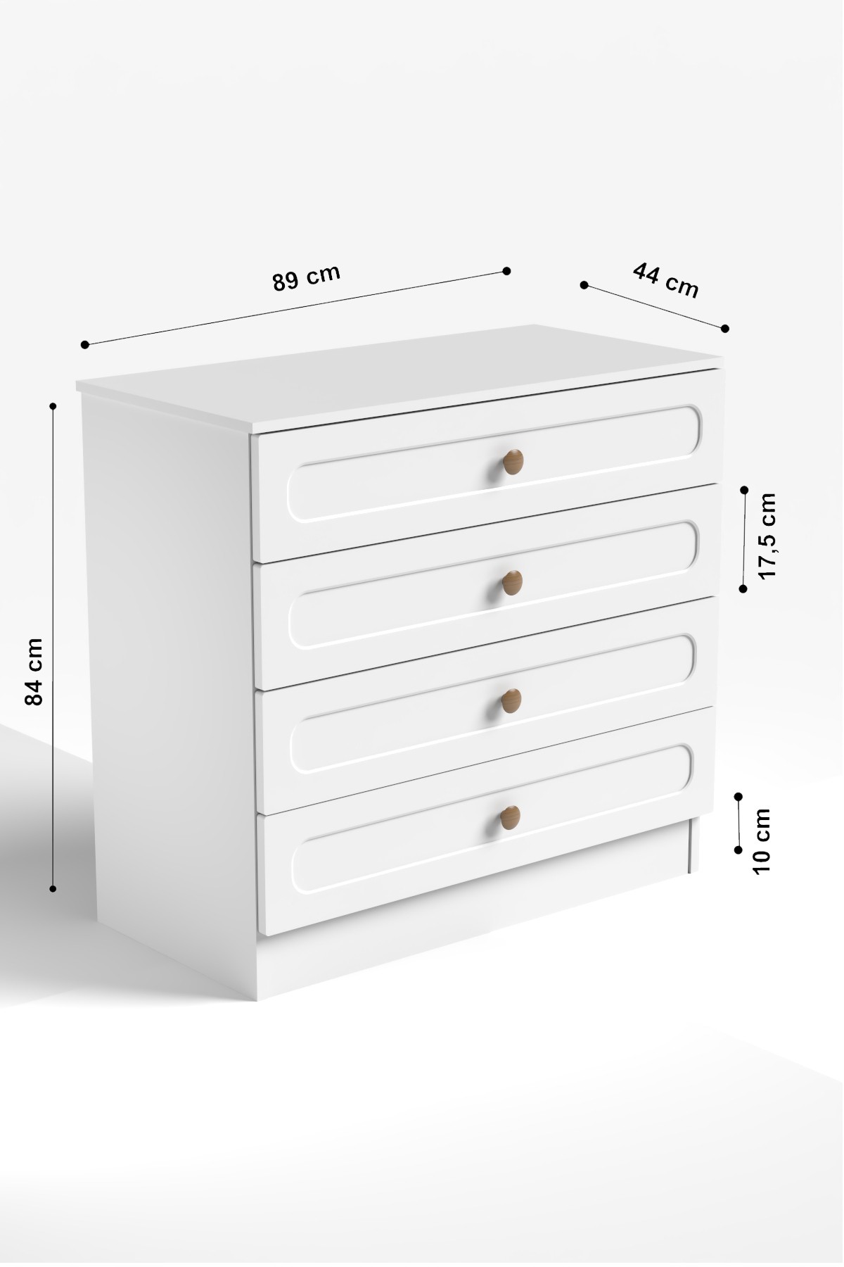 – Modern tasarımıyla evinizin dekorasyonuna şıklık katan Bohem şifonyer, modern yaşam alanlarının vazgeçilmez bir parçası.; – Çekmeceli yapısı sayesinde geniş depolama alanı sunar ve eşyalarınızı düzenli bir şekilde saklamanızı sağlar.; – 4 çekmece kapasitesi ile farklı eşyalarınızı ayrı ayrı organize etme imkanı verir, böylece ihtiyacınız olanı kolayca bulabilirsiniz.; – 44 cm derinlik, 89 cm genişlik ve 84 cm yüksekliğiyle ideal boyutlarda tasarlanmıştır; her türlü odaya uyum sağlar.; – Suntalam materyali ile dayanıklılık ve uzun ömürlü kullanım vaat eder; sık kullanıma karşı dirençlidir.; – TR menşeili olan bu ürün, yerel üretim avantajlarıyla kaliteyi ve güvenilirliği ön plana çıkarır.;