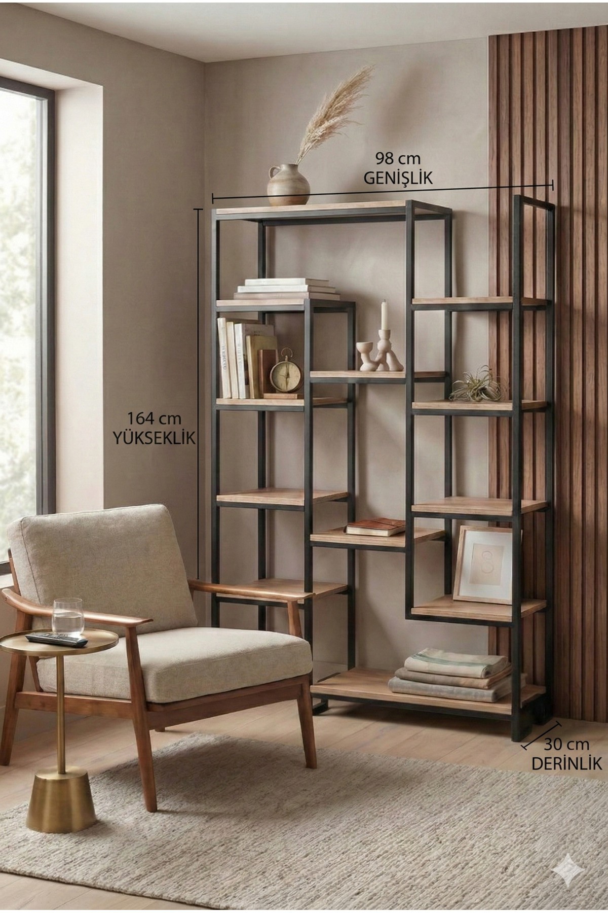 – Modern tasarımıyla dikkat çeken LORA 12 raflı metal kitaplık, yaşam alanlarınıza şıklık katar.; – 164 cm yüksekliğinde ve 98 cm genişliğindeki bu kitaplık, geniş depolama alanı sunar.; – 30 cm derinliğindeki raflar, kitaplarınız ve dekoratif eşyalarınız için idealdir.; – Metal gövde materyali sayesinde uzun ömürlü ve sağlam bir kullanım sağlar.; – Türkiye'de üretilmiş olup, kalite standartlarına uygun olarak tasarlanmıştır.; – 12 raflı yapısıyla kitap, dergi ve diğer kişisel eşyalarınızı düzenli bir şekilde saklamanıza olanak tanır.;