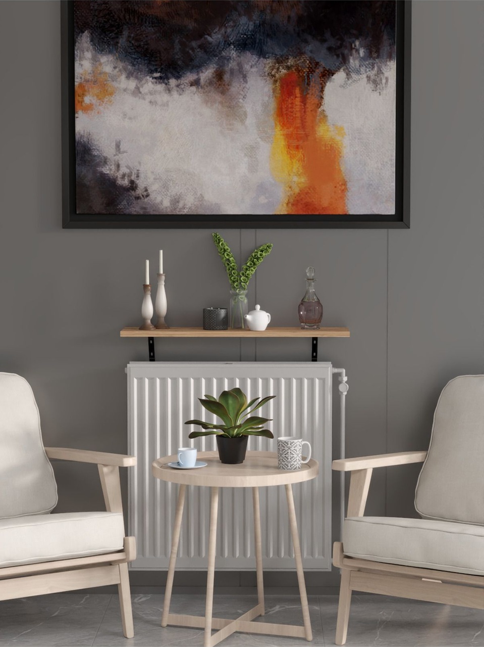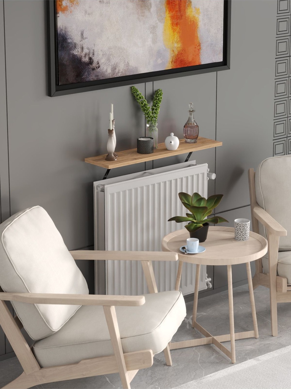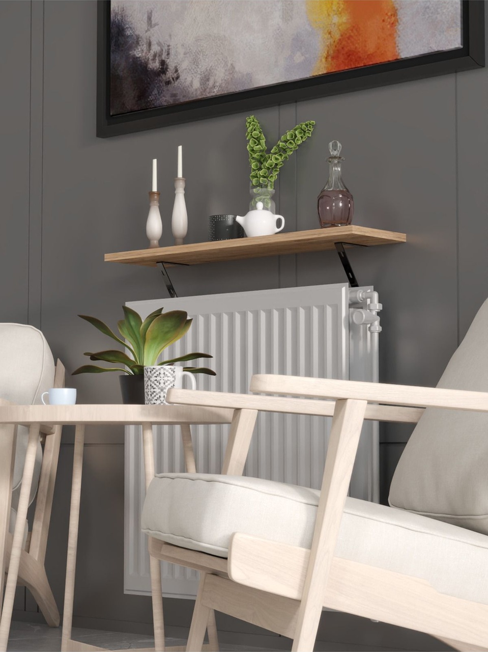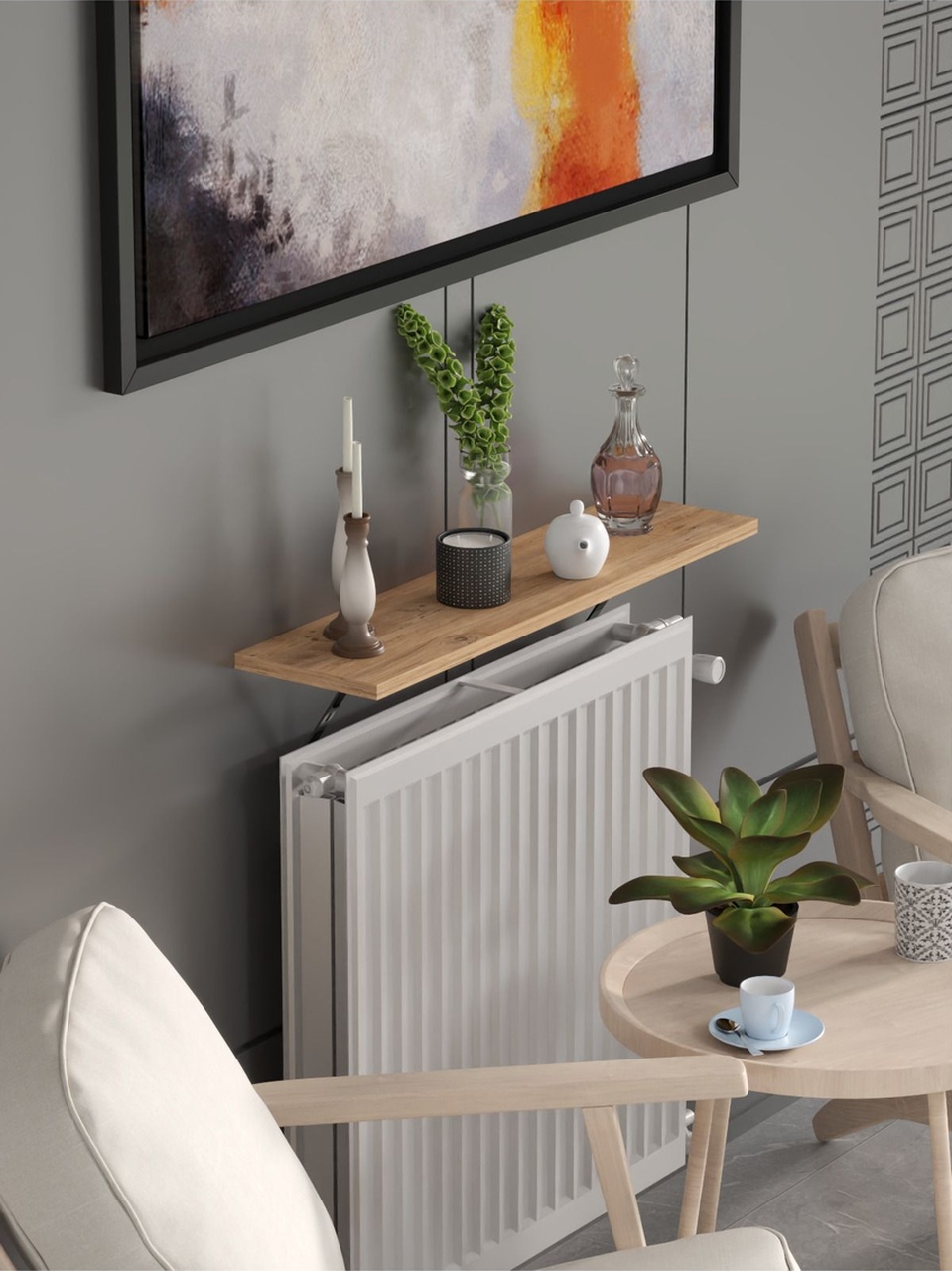 Montajsız Petek Üstü Uçan Raf Kalorifer Peteği 80×20 Cm Beyaz – Atlantik Çam Atlantik Çam